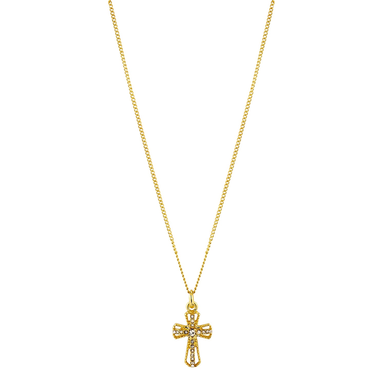 14K Gold Plated Rhinestone Cross Pendant 16"-18" Necklace