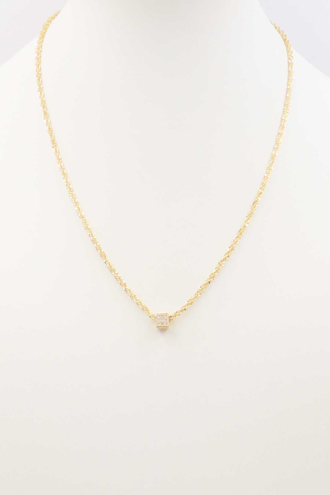 Gold Chain with CZ Pave Pendant 16"-18" Necklace