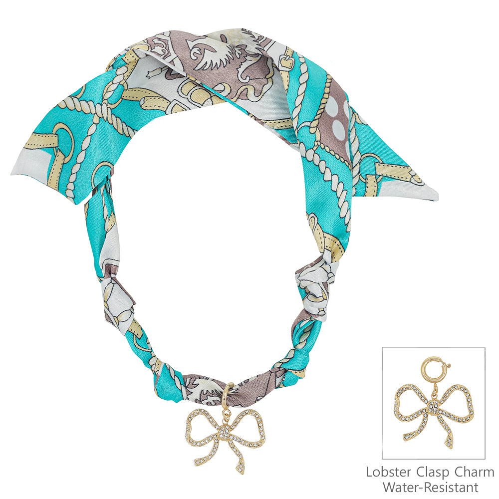 Blue/White Knotted Scarf Necklace with Rhinestone Open Bow 1.5" Charm, VERY POPULAR!