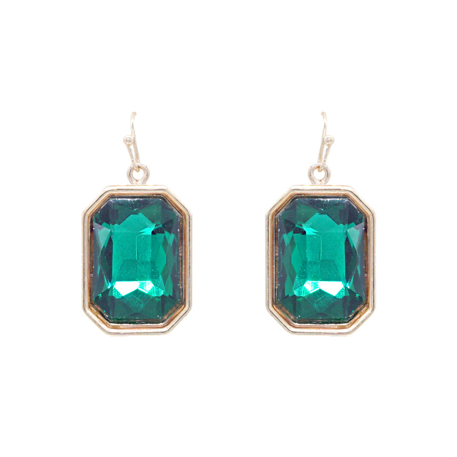 Christmas Emerald Crystal Rectangle .75" Drop Earring