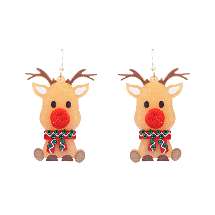 Christmas Acrylic Reindeer Christmas Drop 1.5" Earring