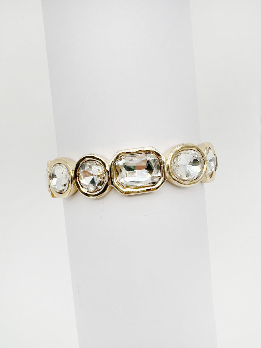 Clear Rectangle and Circle Crystal Stretch Bracelet
