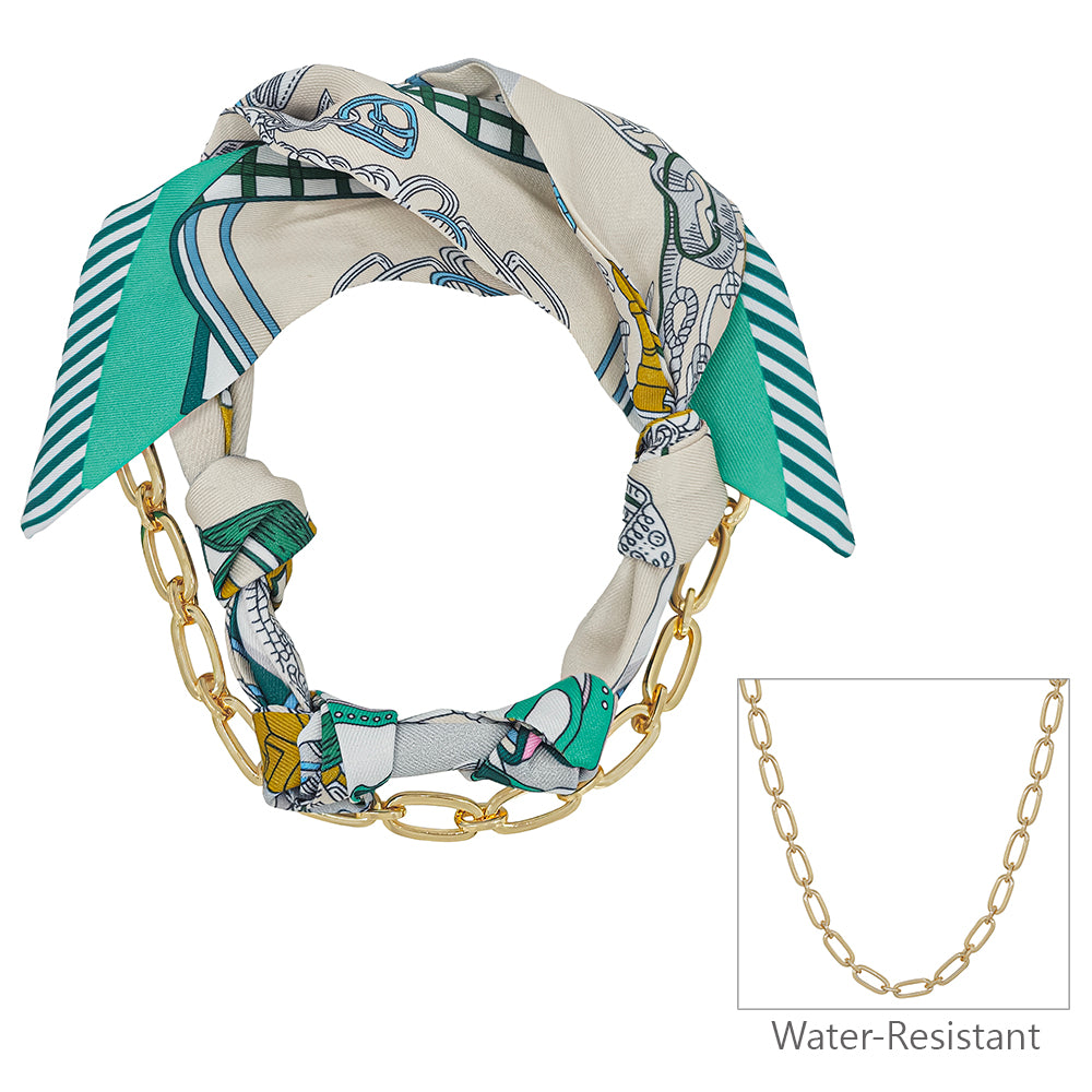 Cream and Turquoise Knotted Scarf Necklace with Gold Chain (Multi Function, Chain Removable)