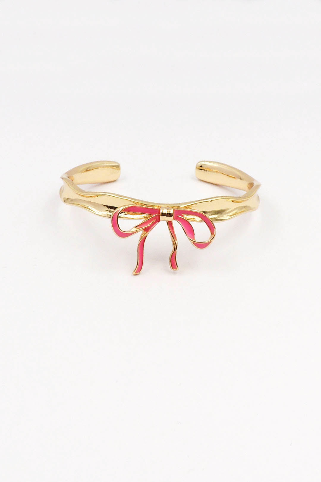 Gold Metal Hammered Cuff with Hot Pink Bow