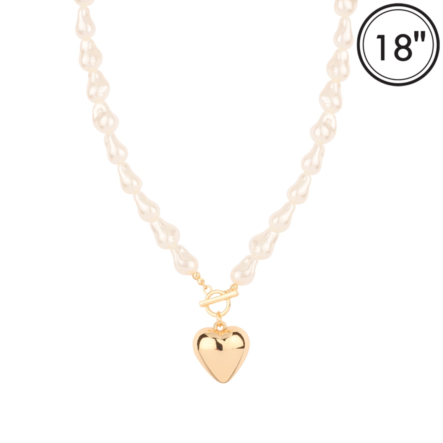 Freshwater Pearl Chain with Gold Puffy Heart 16"-18" Necklace