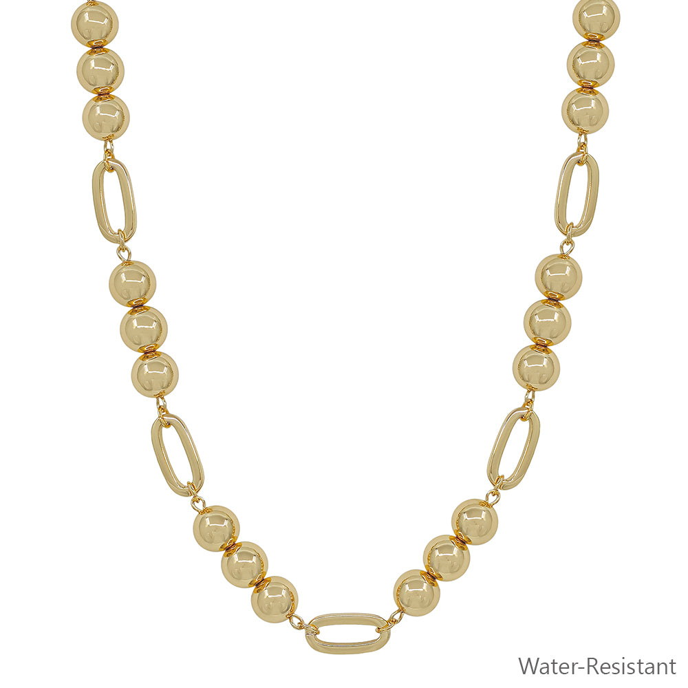 Water Resistant Gold Beaded 10MM Beaded and Open Oval 16"-18" Necklace