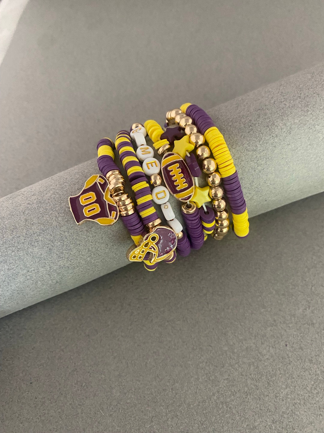 Gameday Purple and Yellow Set of 7 Football Stretch Bracelets