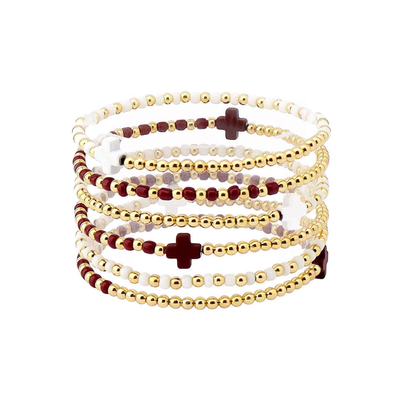 Gameday Set of 6 Maroon and White Beaded Stretch Bracelets, Very Popular!