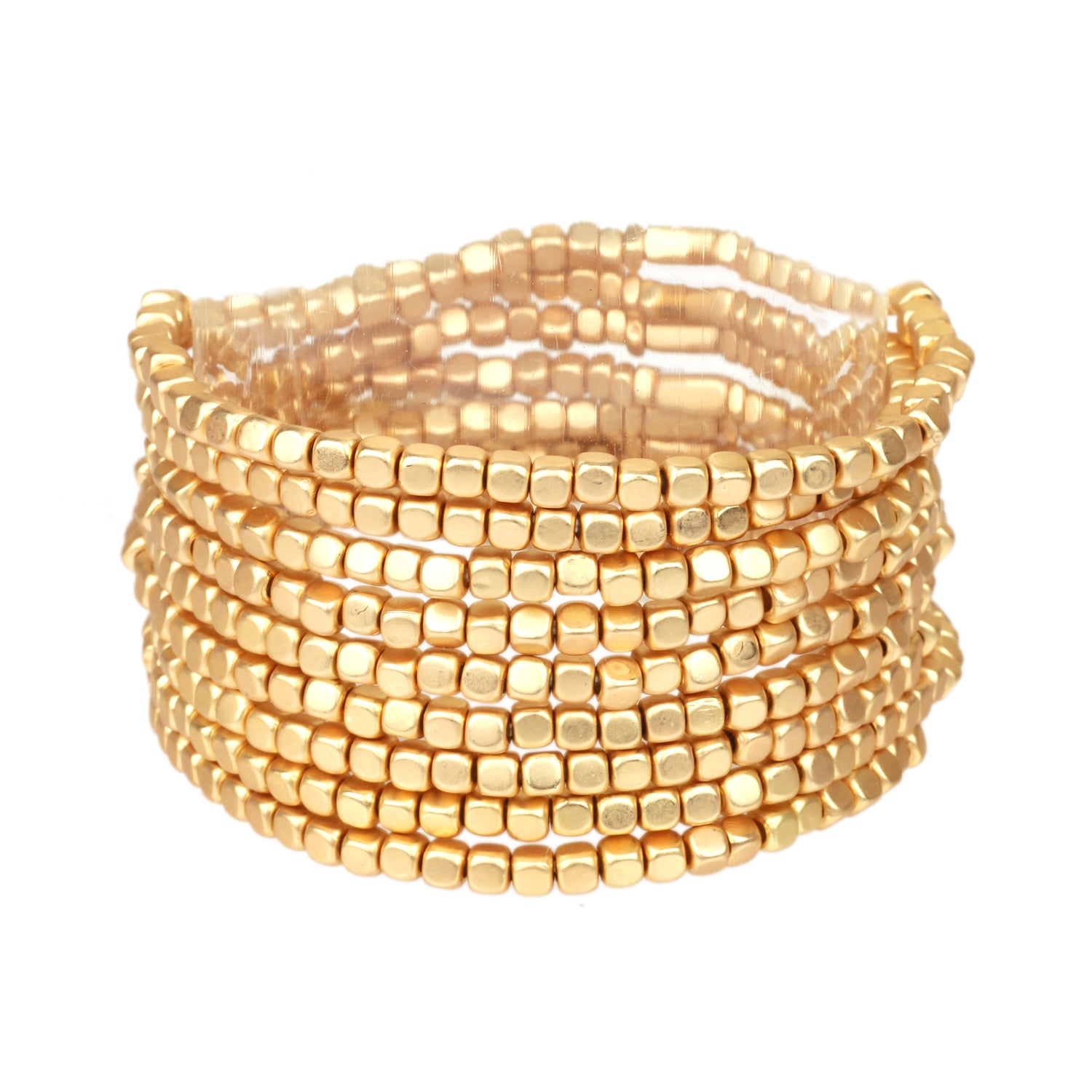 Gold Small Nugget Set of 9 Stretch Bracelets