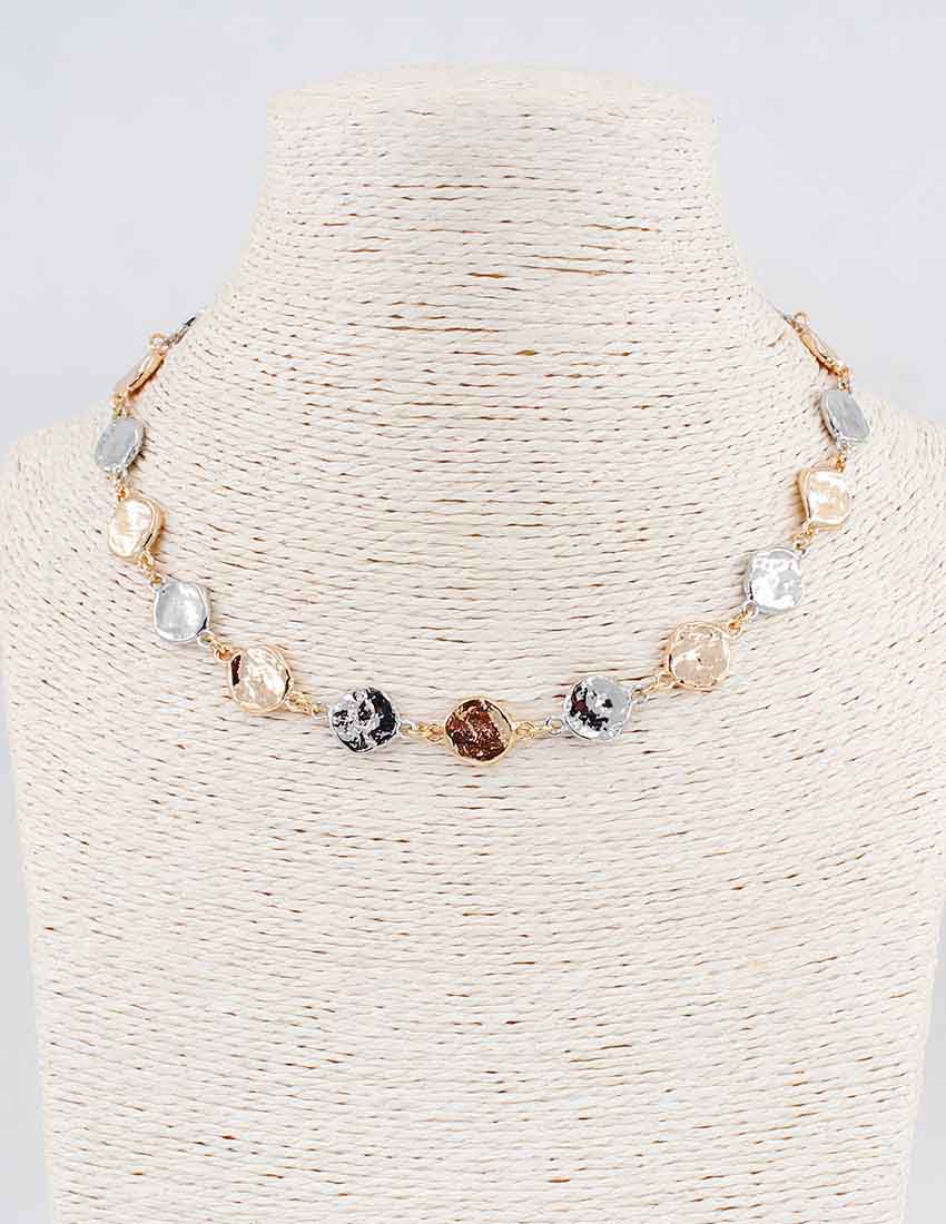 Gold and Silver Hammered Circle 16"-18" Necklace