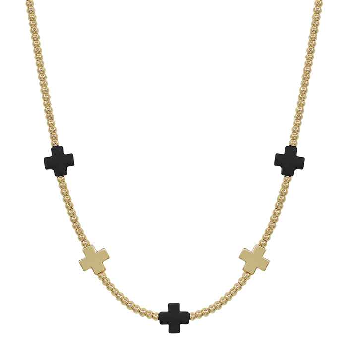 Gold Beaded with Black and Gold Cross Accents 16"-18" Necklace