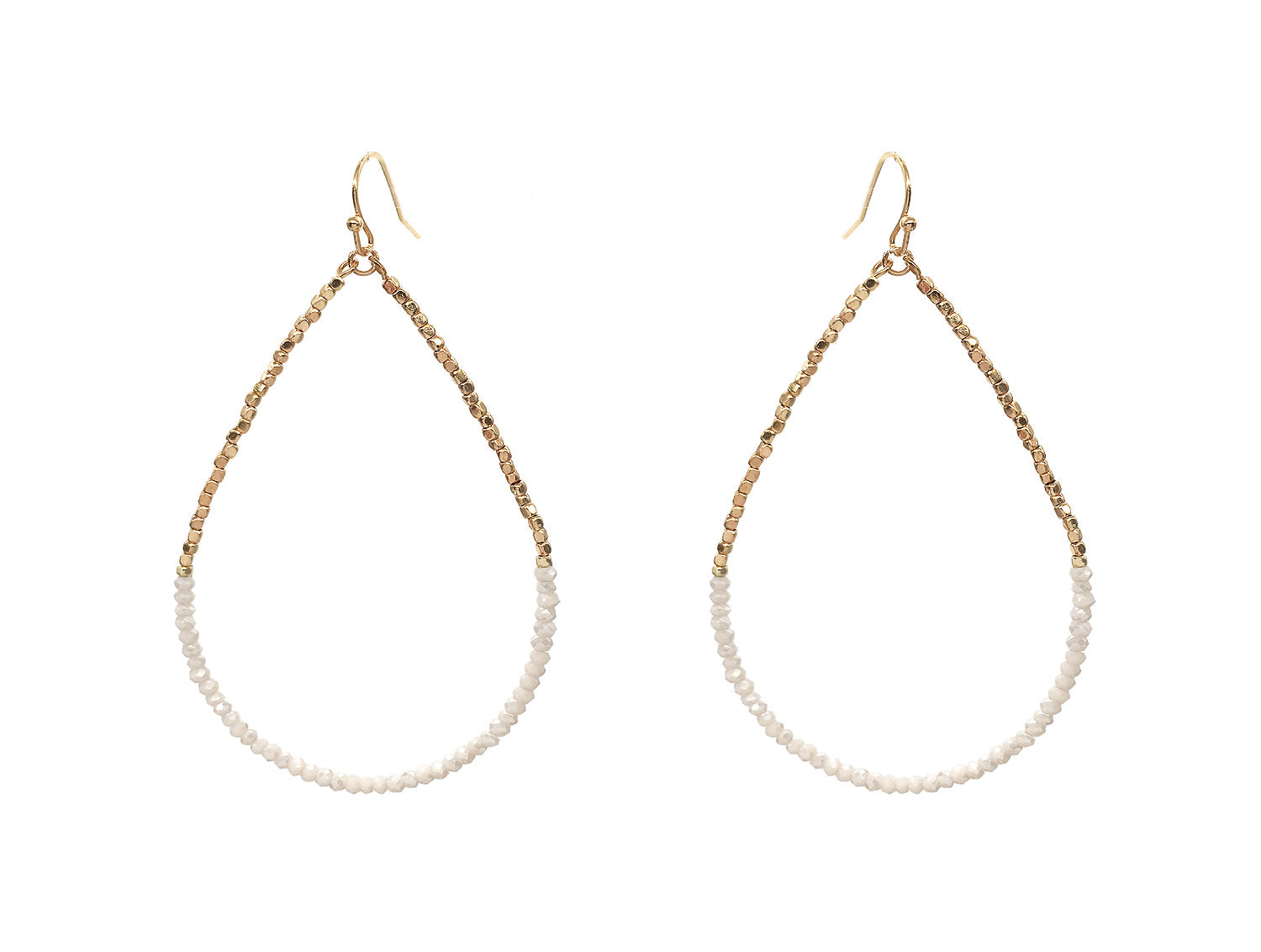 Gold Beaded with Natural Crystal 2" Teardrop Earring