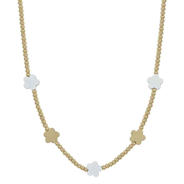 Gold Beaded with White Flower Accents 16"-18" Necklace
