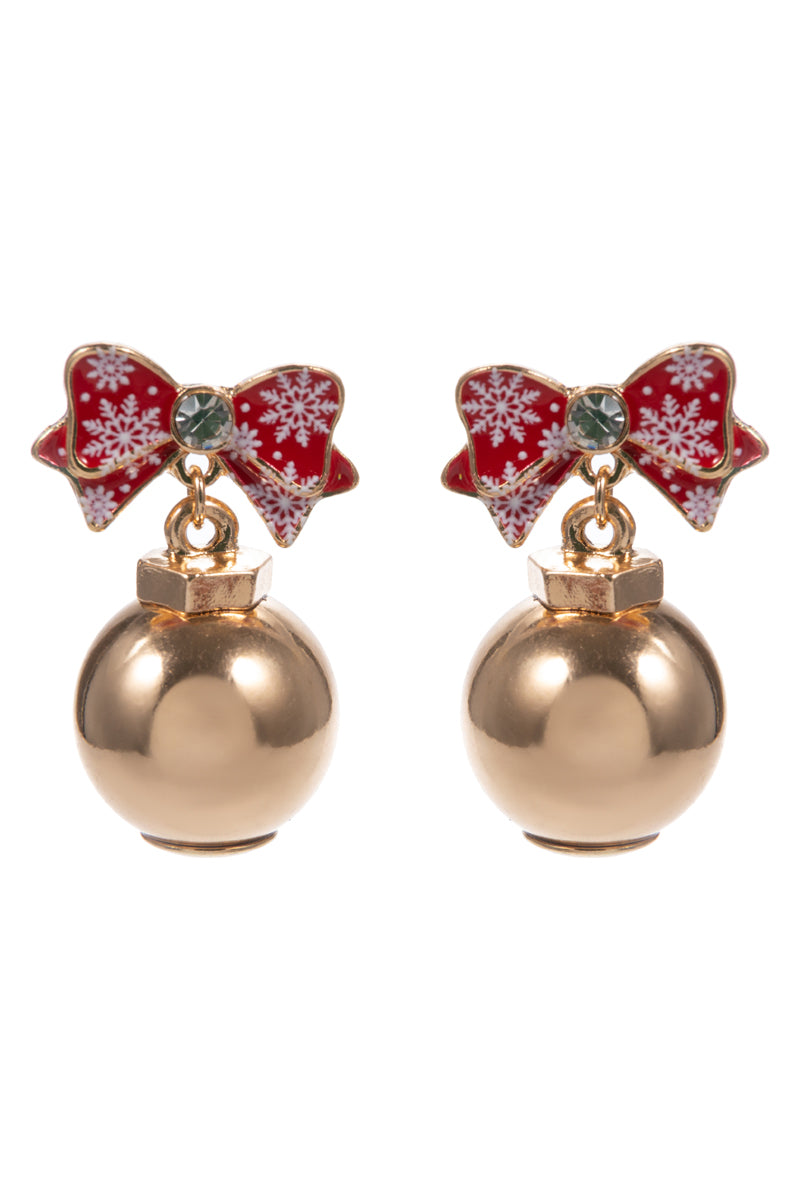 Red Christmas Bow with Gold Ornament 1.25" Earring