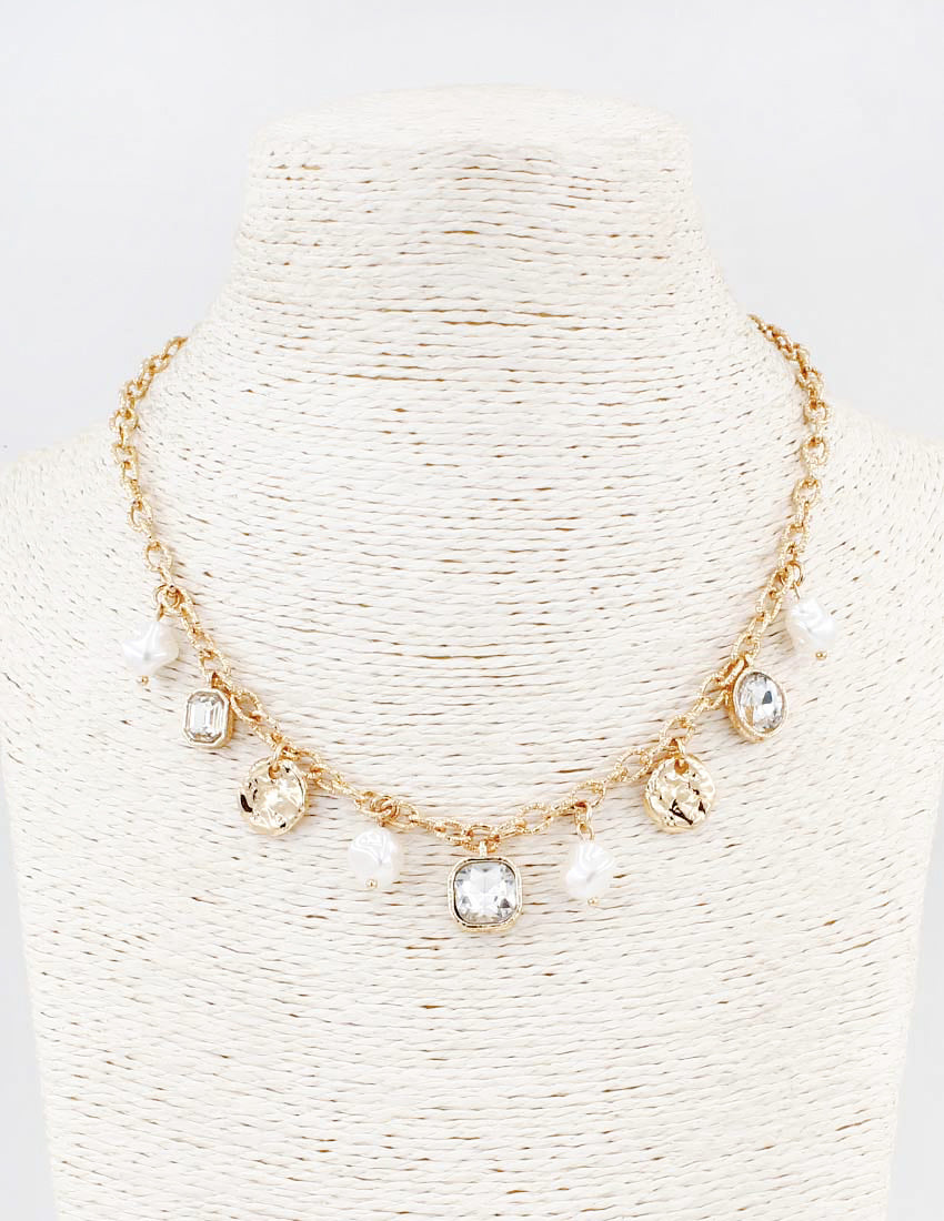 Gold Chain with Hammered Coin and Pearl 16"-18" Necklace