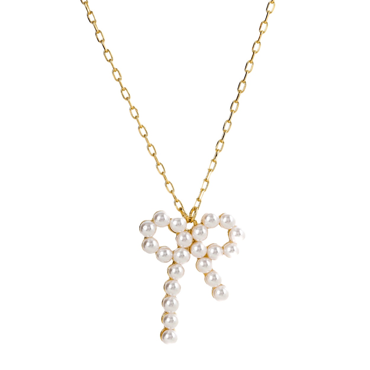 Gold Chain with Open Pearl Bow 16"-18" Necklace