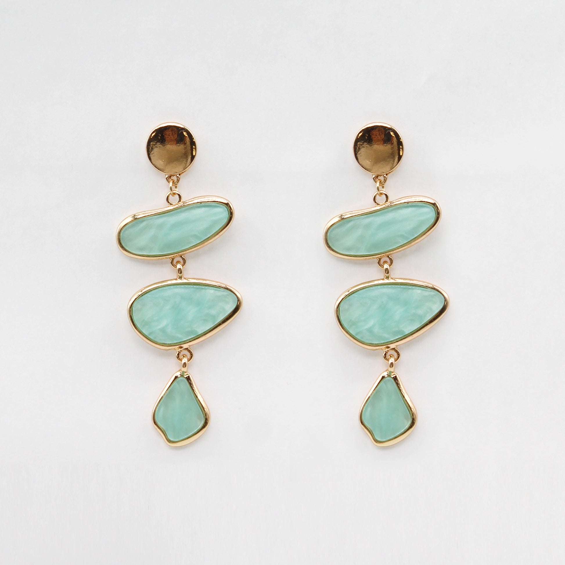 Gold Circle with Mint Pearlized Triple Drop Resin 2.5" Earring