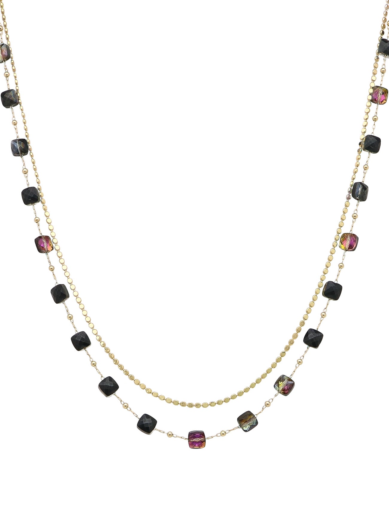 Multi Layered Gold and Black Iridescent Crystal 16"-18" Necklace