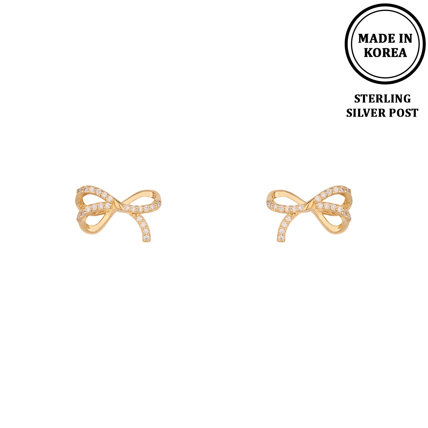 Gold with Rhinestone Bow Sterling Silver Post Hypoallergenic Earring