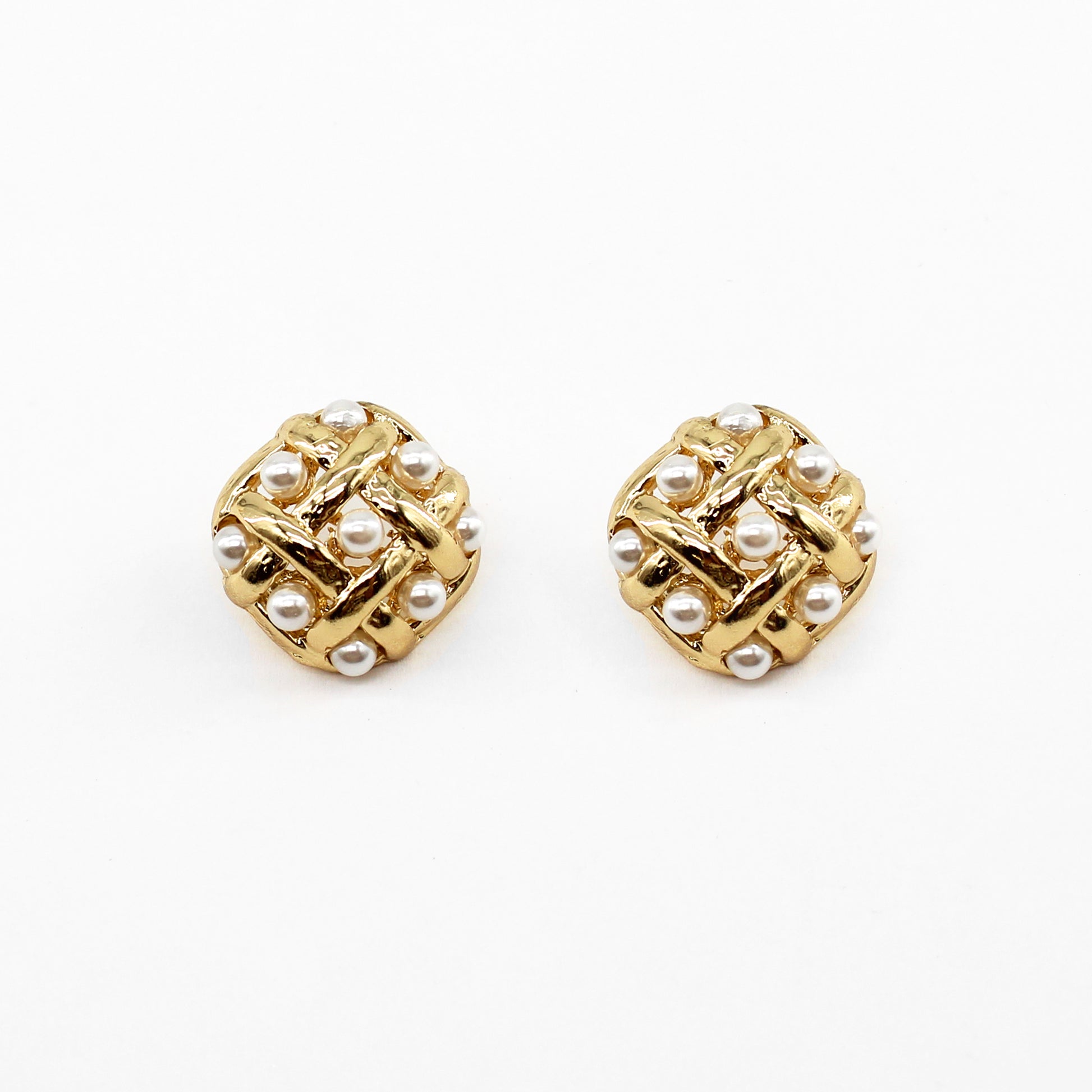 Gold Woven and Pearl Square Studded Earring