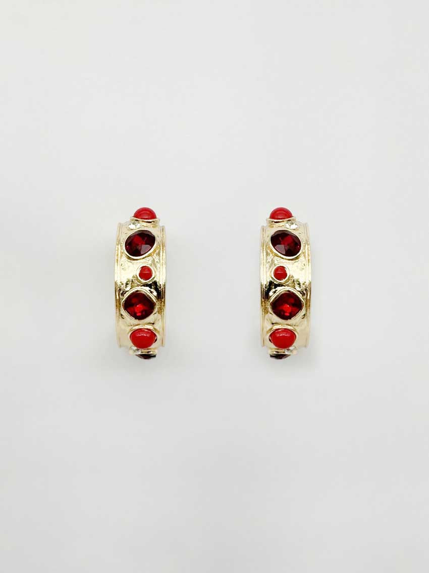 Gold Hammered 1.5" Hoop with Red Stone Accents