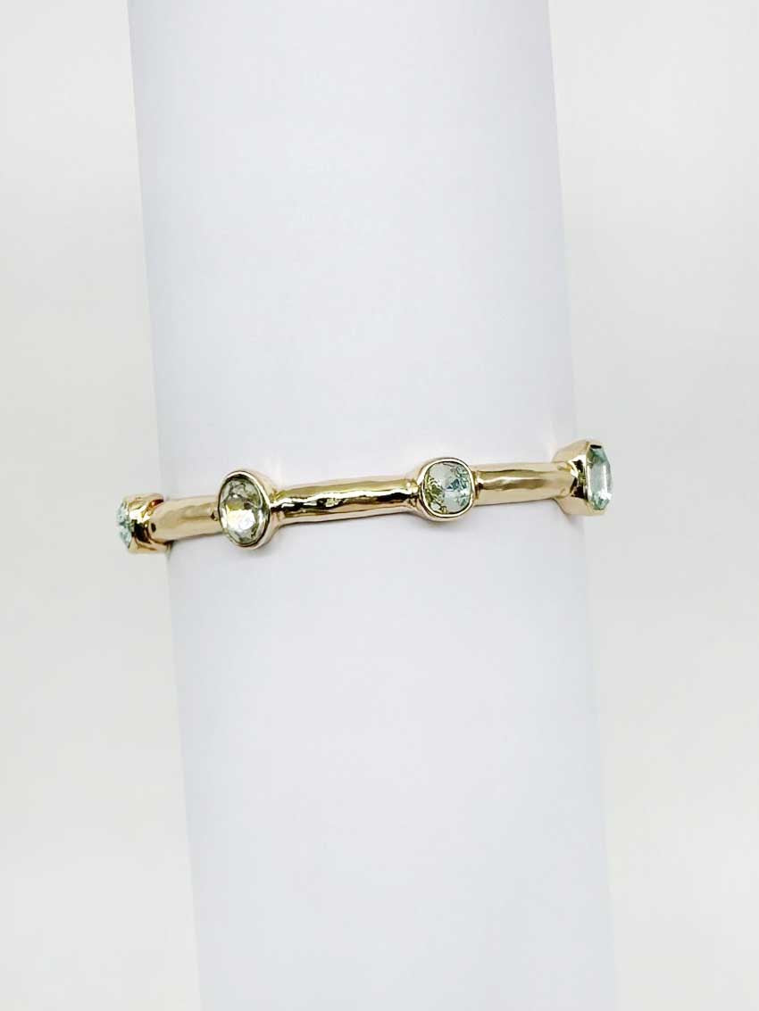 Gold Hammered Stretch Bracelet with Clear Crystal Accents