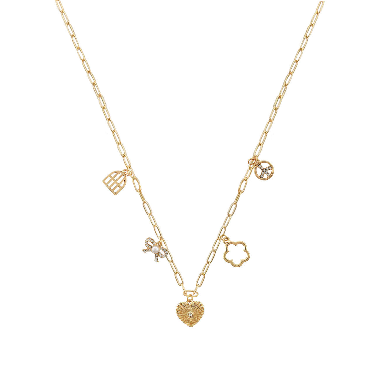 Gold Heart, Bow, Flower Charm 16"-18" Necklace