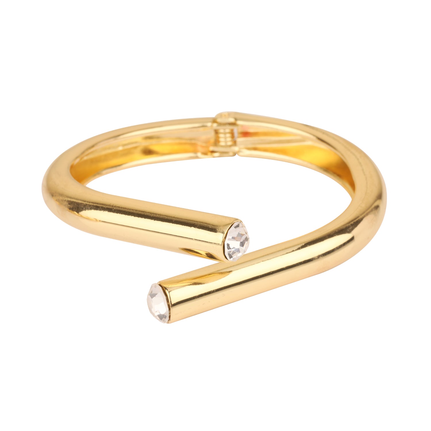 Gold Metal Hinged with Rhinestone End Cuff Bracelet