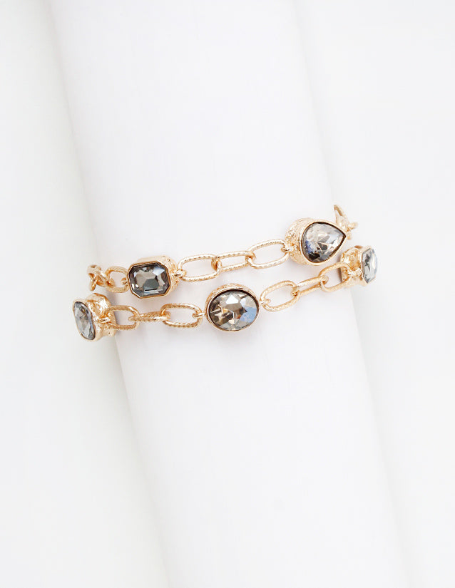Gold Open Chain with Black Diamond Stones Double Layered Bracelet