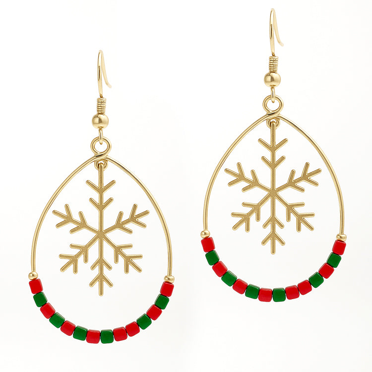 Gold Snowflake Cutout with Multi Beaded Accent Open Circle 2" Earring