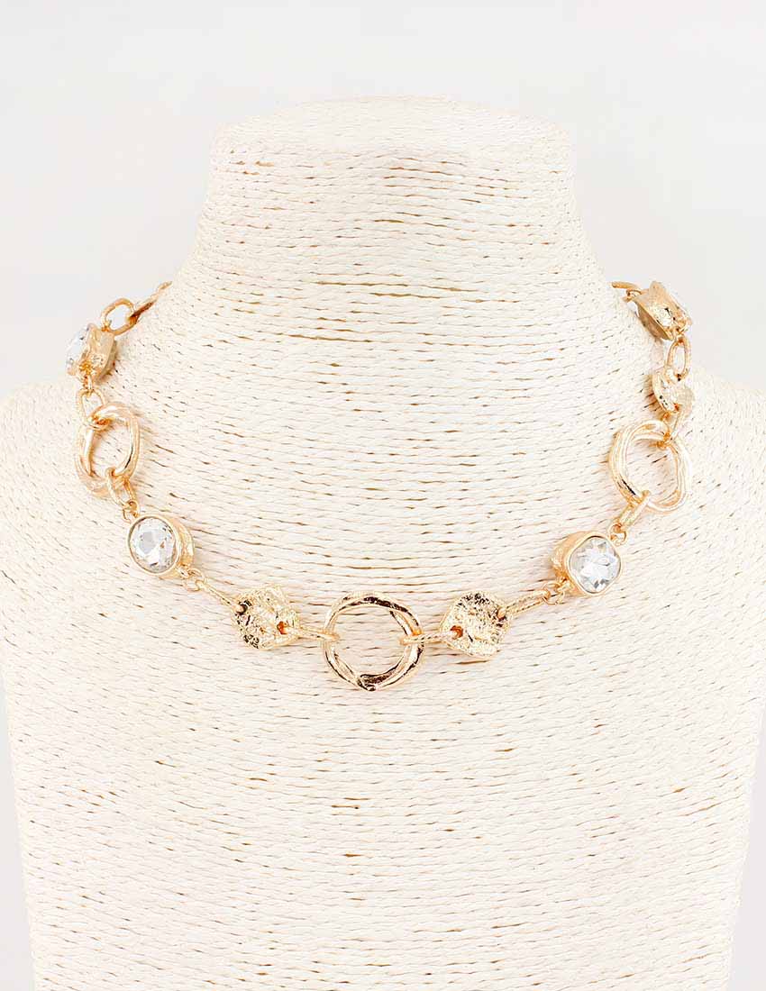 Gold Textured Necklace with Clear Stone 16"-18" Necklace