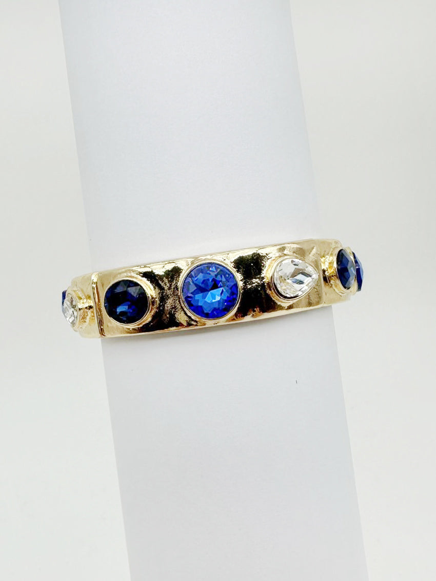 Gold with Blue and Clear Crystals Stretch Bracelet