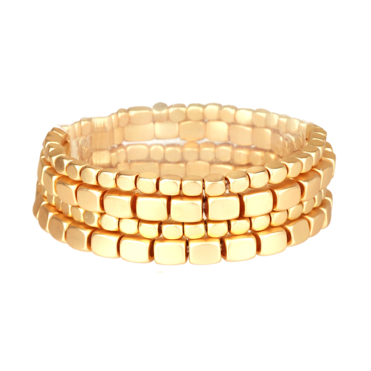 Matte Gold Square Beaded Set of 4 Strech Bracelet Set