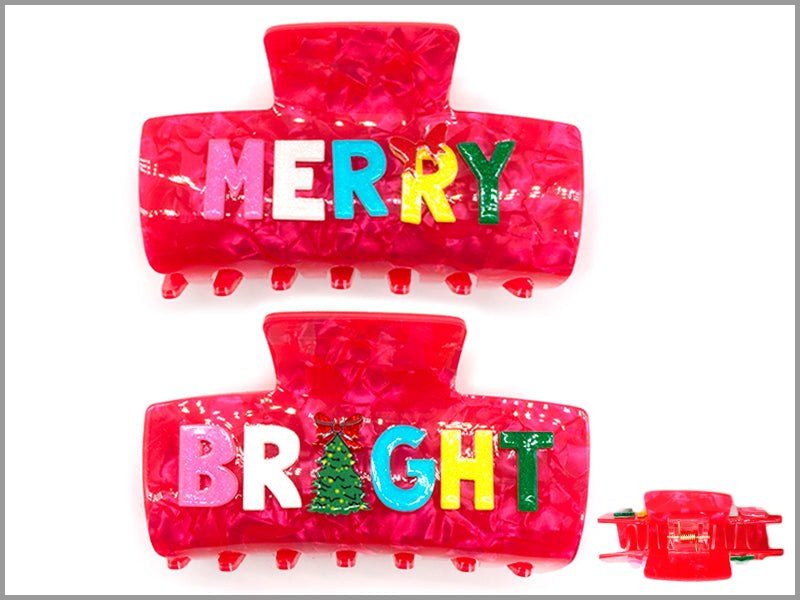 Merry and Bright on Hot Pink Acrylic Claw Clip