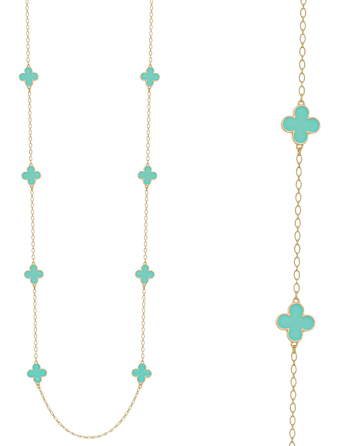 Mint Color Coated Clover with Gold Chain 36" Necklace