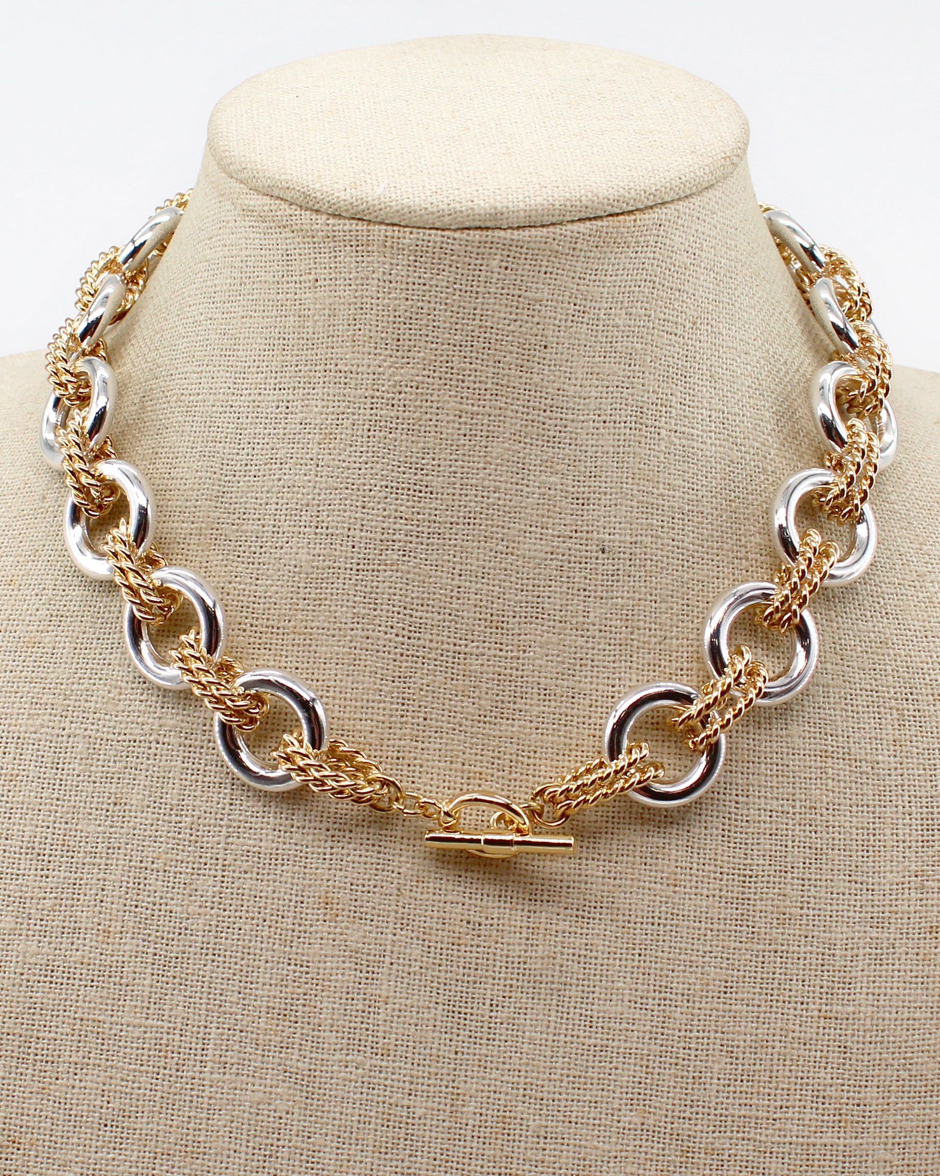 Gold and Silver Two Tone Textured Necklace 16"-18" Necklace