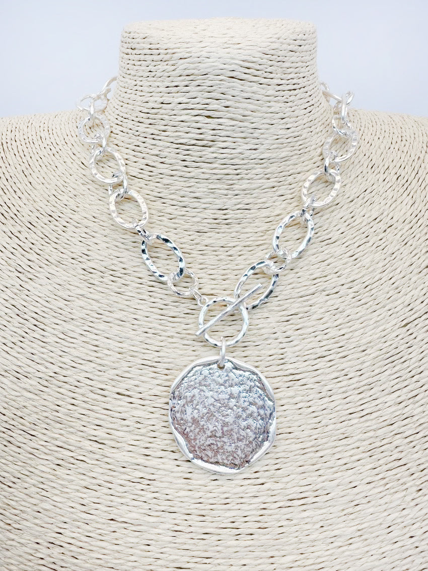 Open Silver Chain with Hammered Coin Charm 16"-18" Necklace