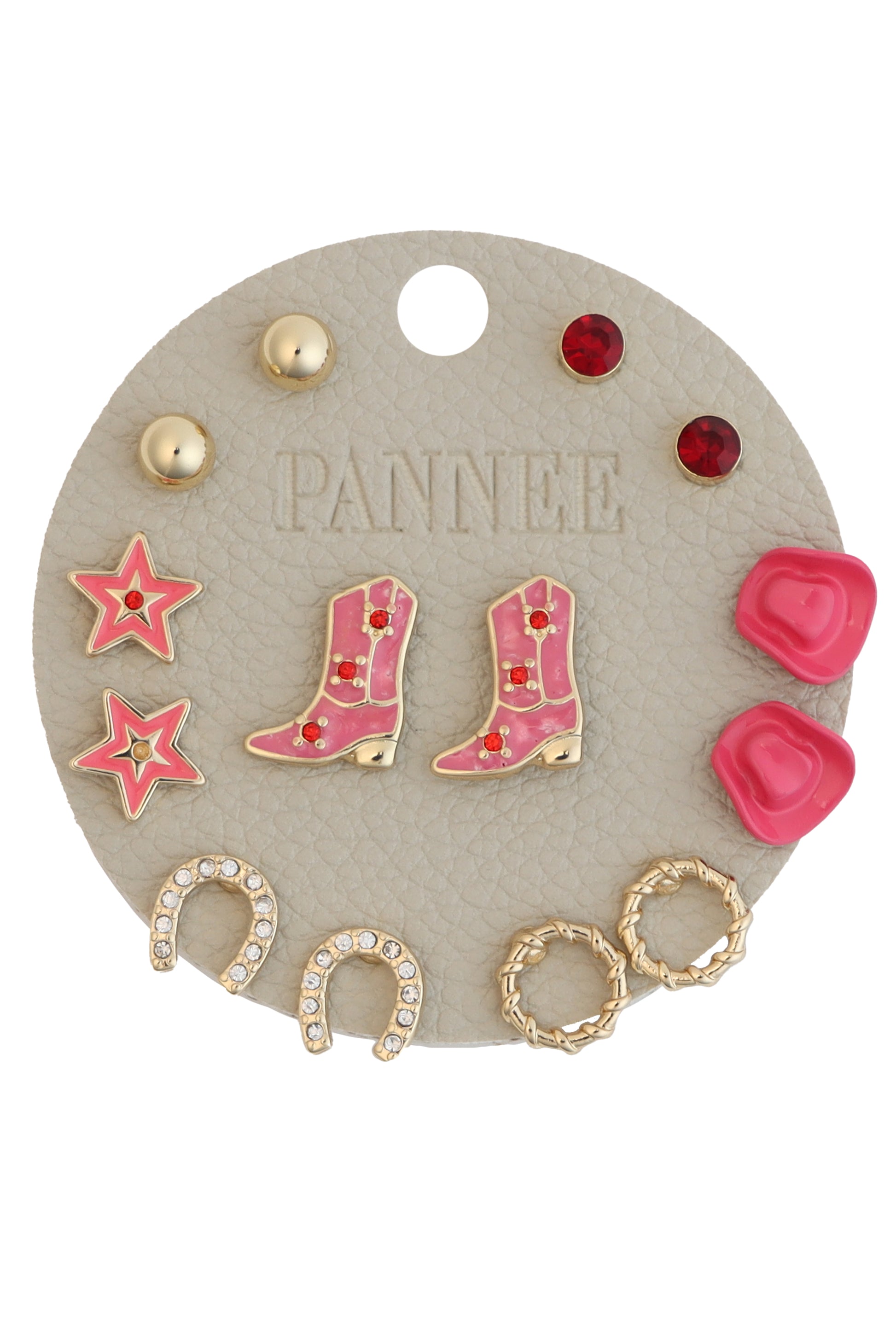 Pink Cowboy Boot, Western Set of 7 Stud Earrings