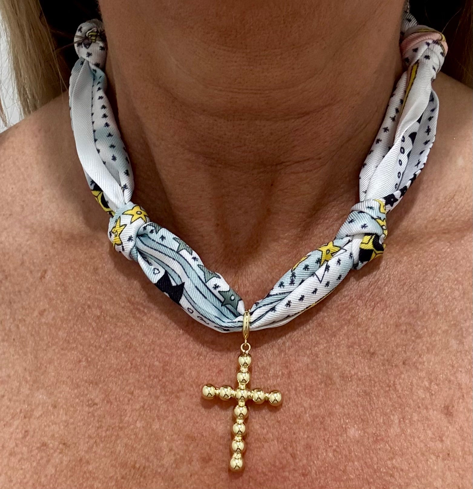 Pink, Navy and White Knotted Scarf with Bubble Cross Removable Charm