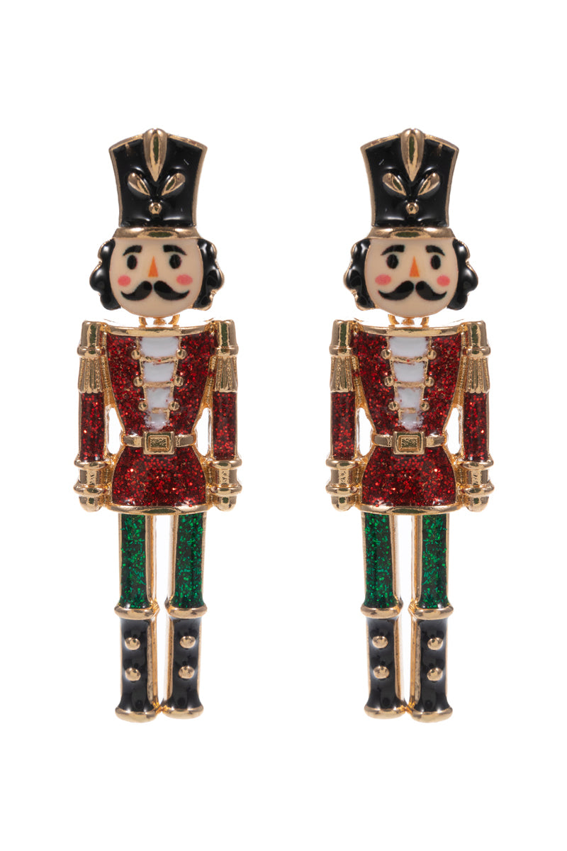 Red Metal Color Coated Nutcracker 2" Christmas Earring