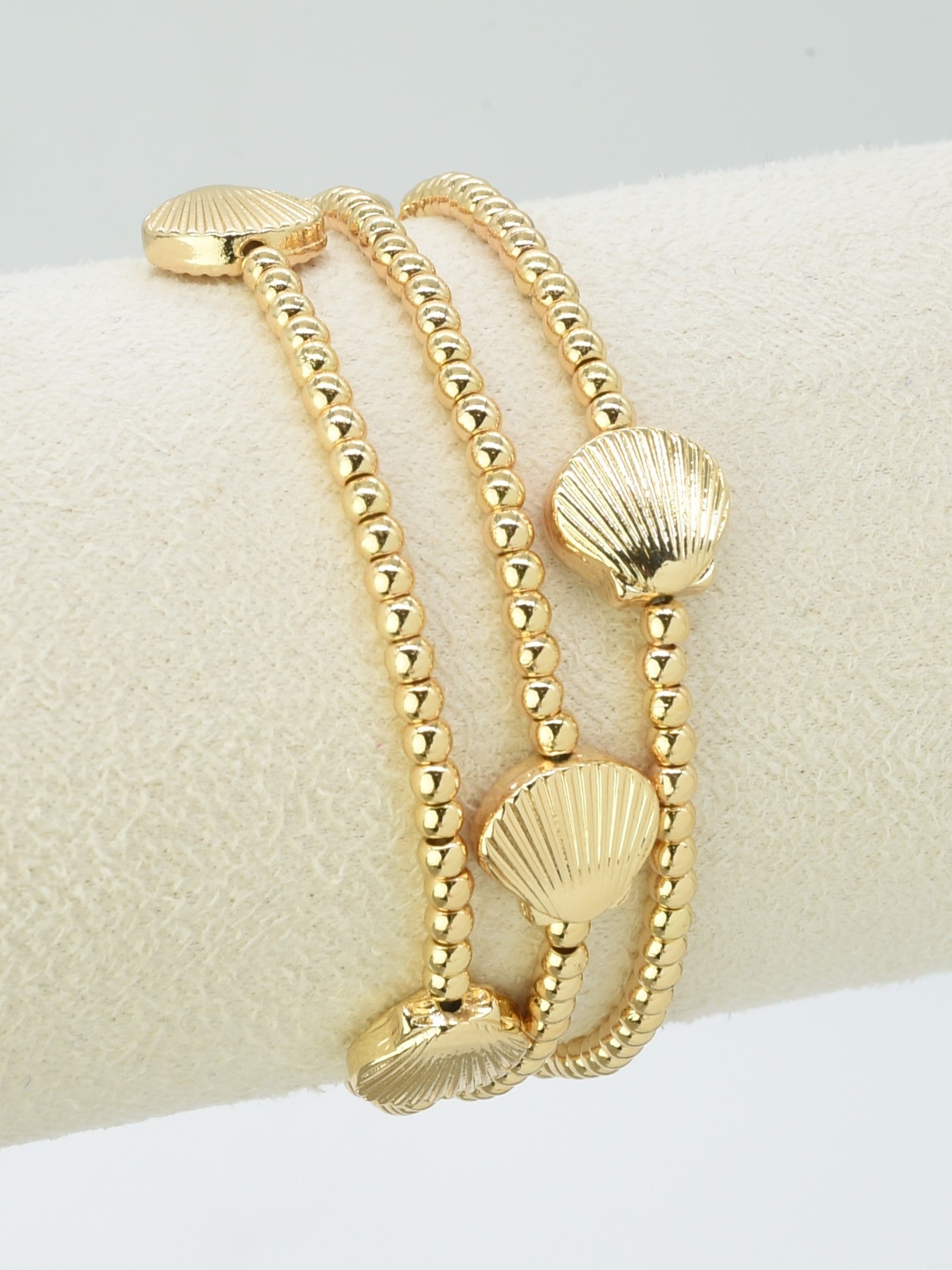 Set of 3 Gold Beaded with Gold Shell Stretch Bracelets