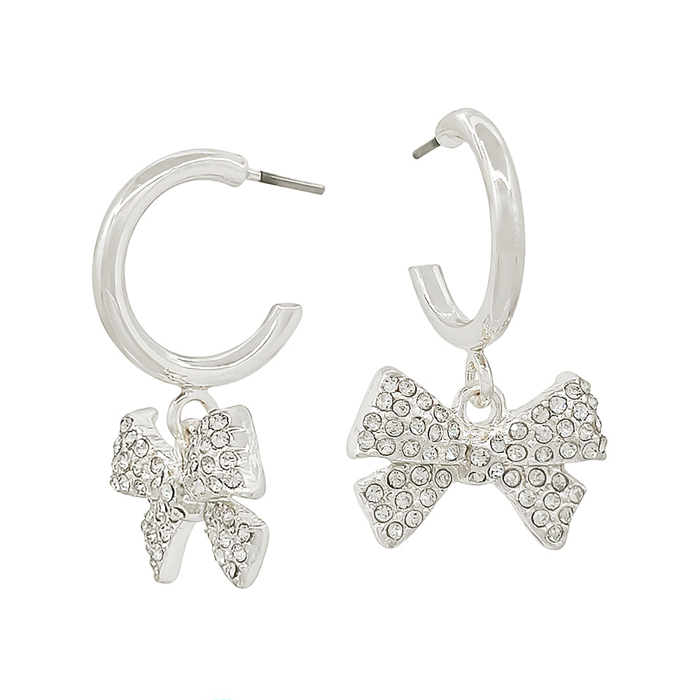 Silver .5" Hoop with Rhinestone Bow Charm