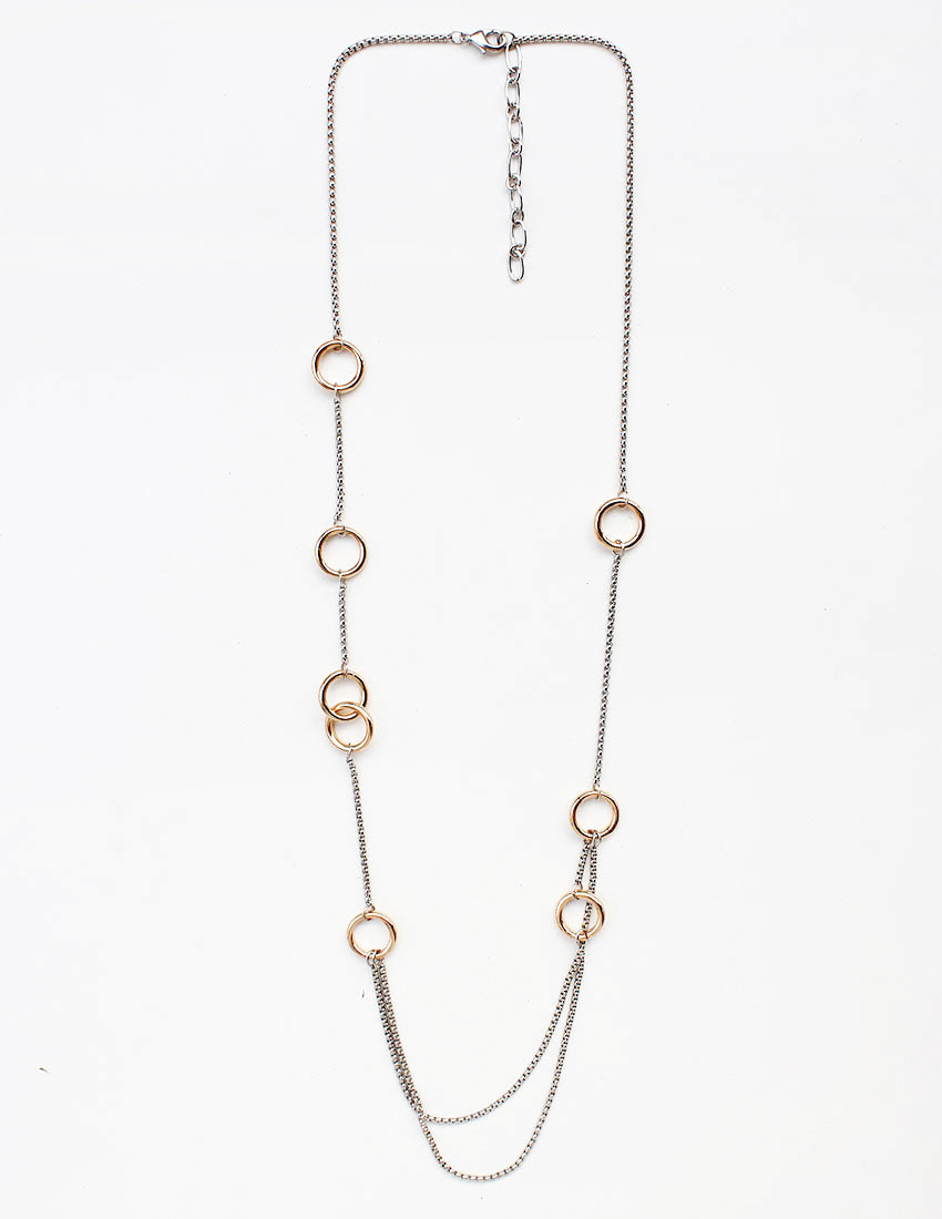 Silver Chain with Double Gold Circle Accents 32" Necklace