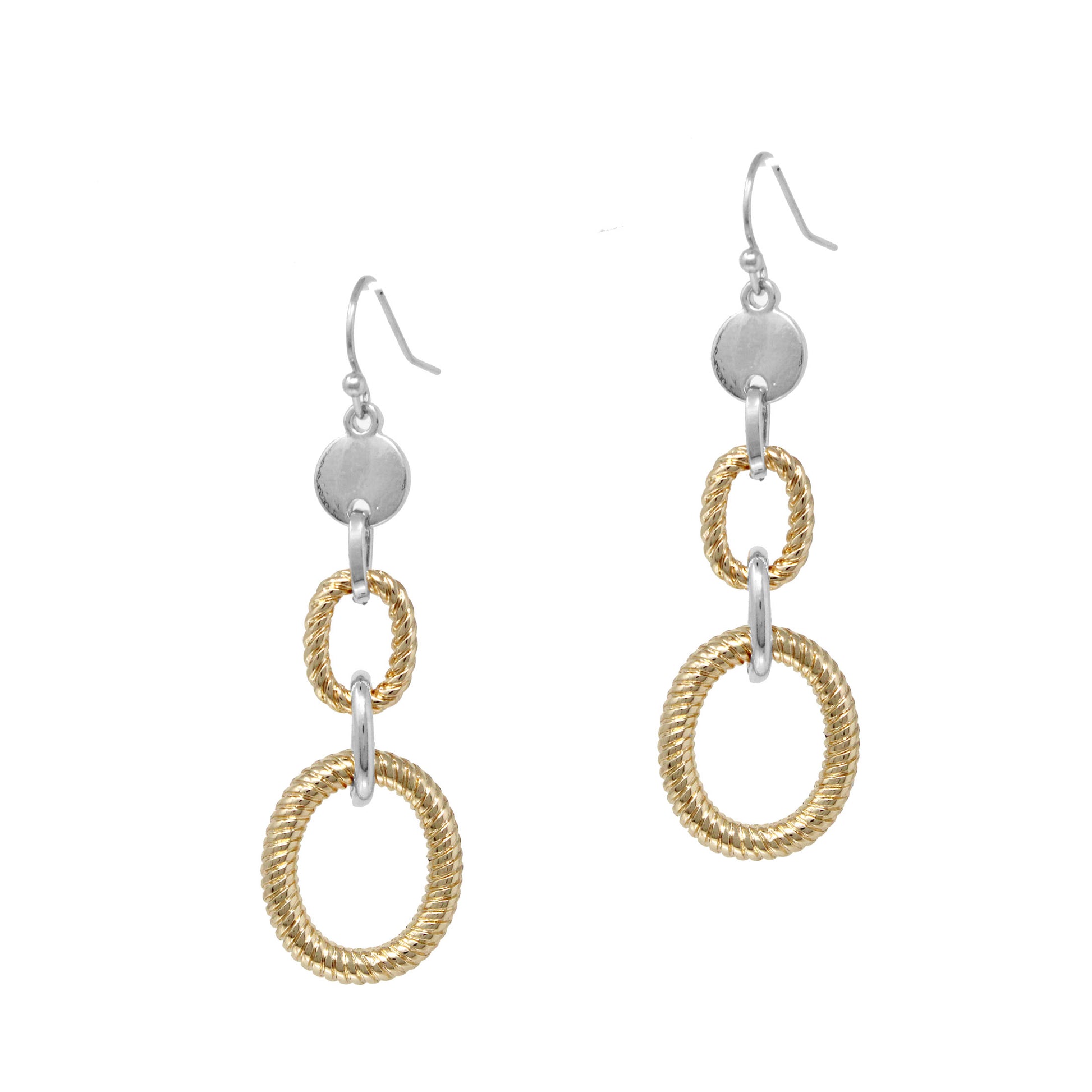 Silver Coin with Textured Gold 3 Drop Open 2" Earring