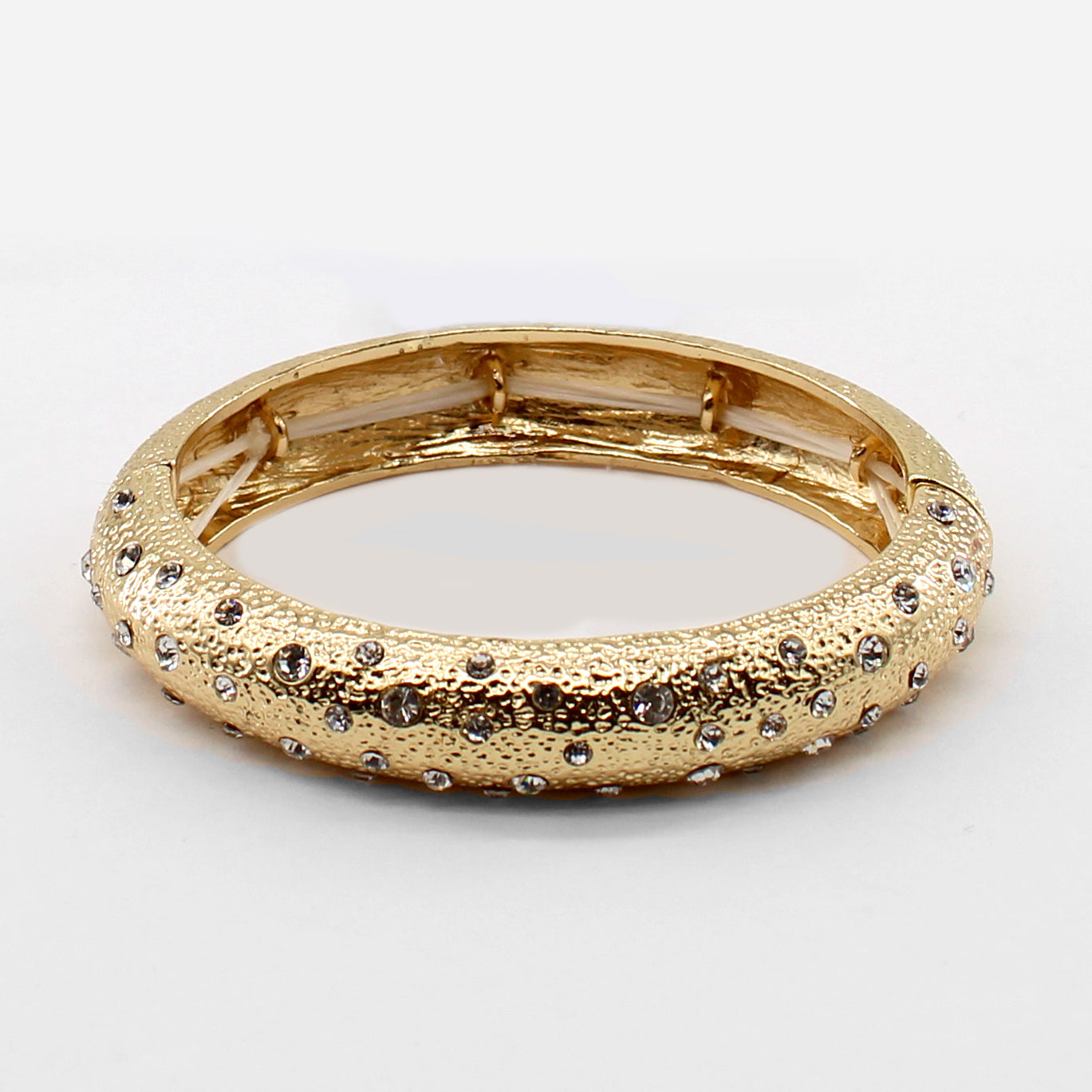 Textured Gold Stretch Bracelet with Small Rhinestone Accents