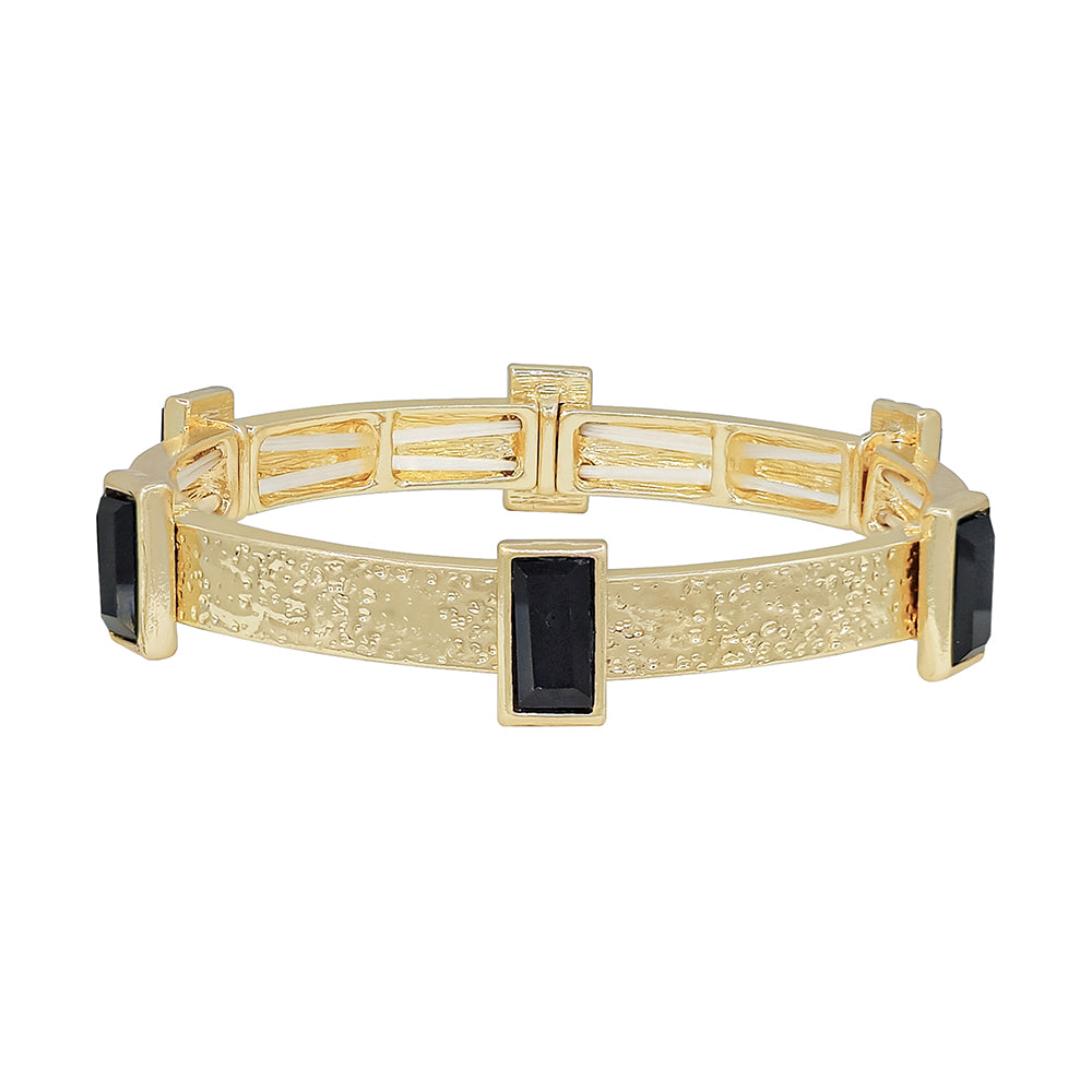 Textured Gold with Black Rectangle Crystals Stretch Bracelet