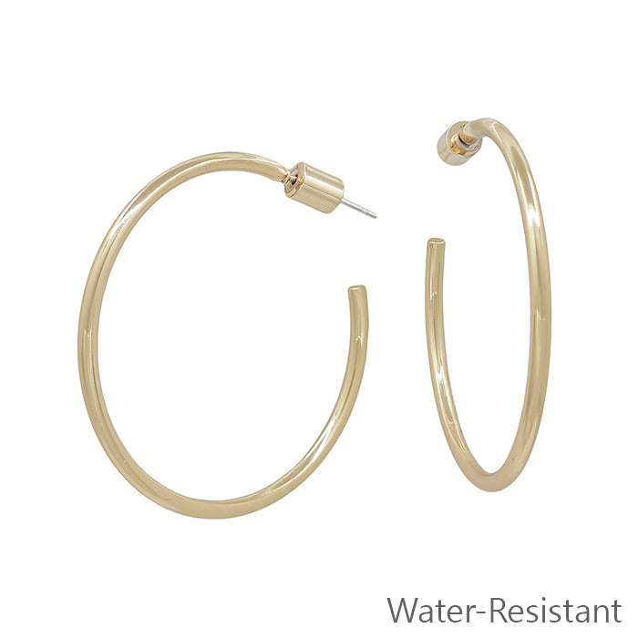 Thin (2MM) Water Resistant Gold Hoop with Cylinder Back Closure Earring