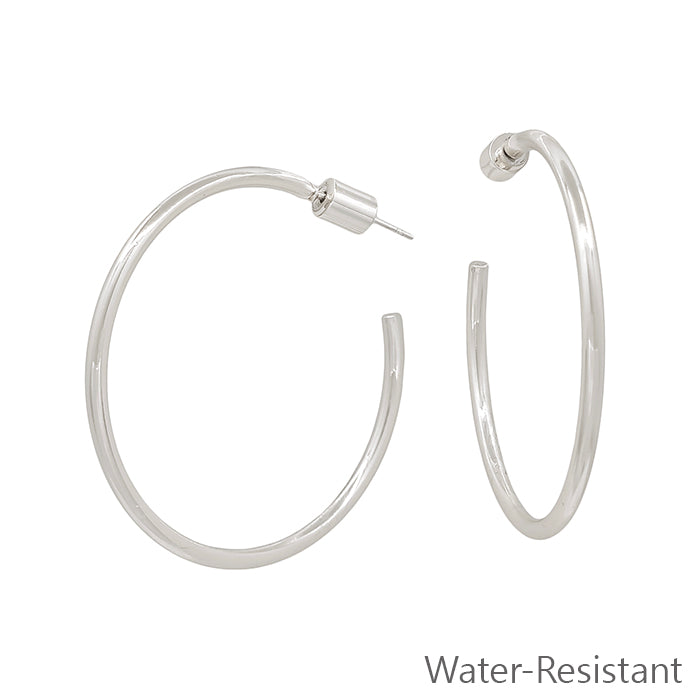 Thin (2MM) Water Resistant Silver Hoop with Cylinder Back Closure Earring