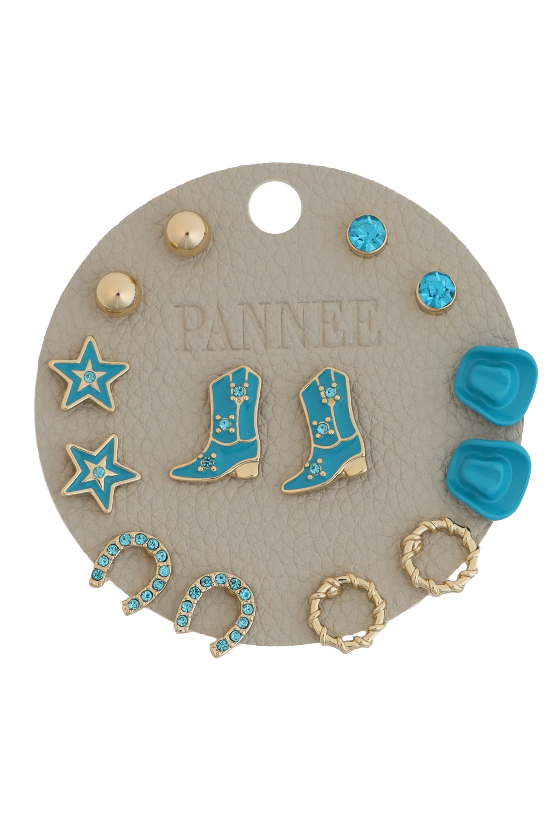 Turquoise Cowboy Boot, Western Set of 7 Stud Earrings