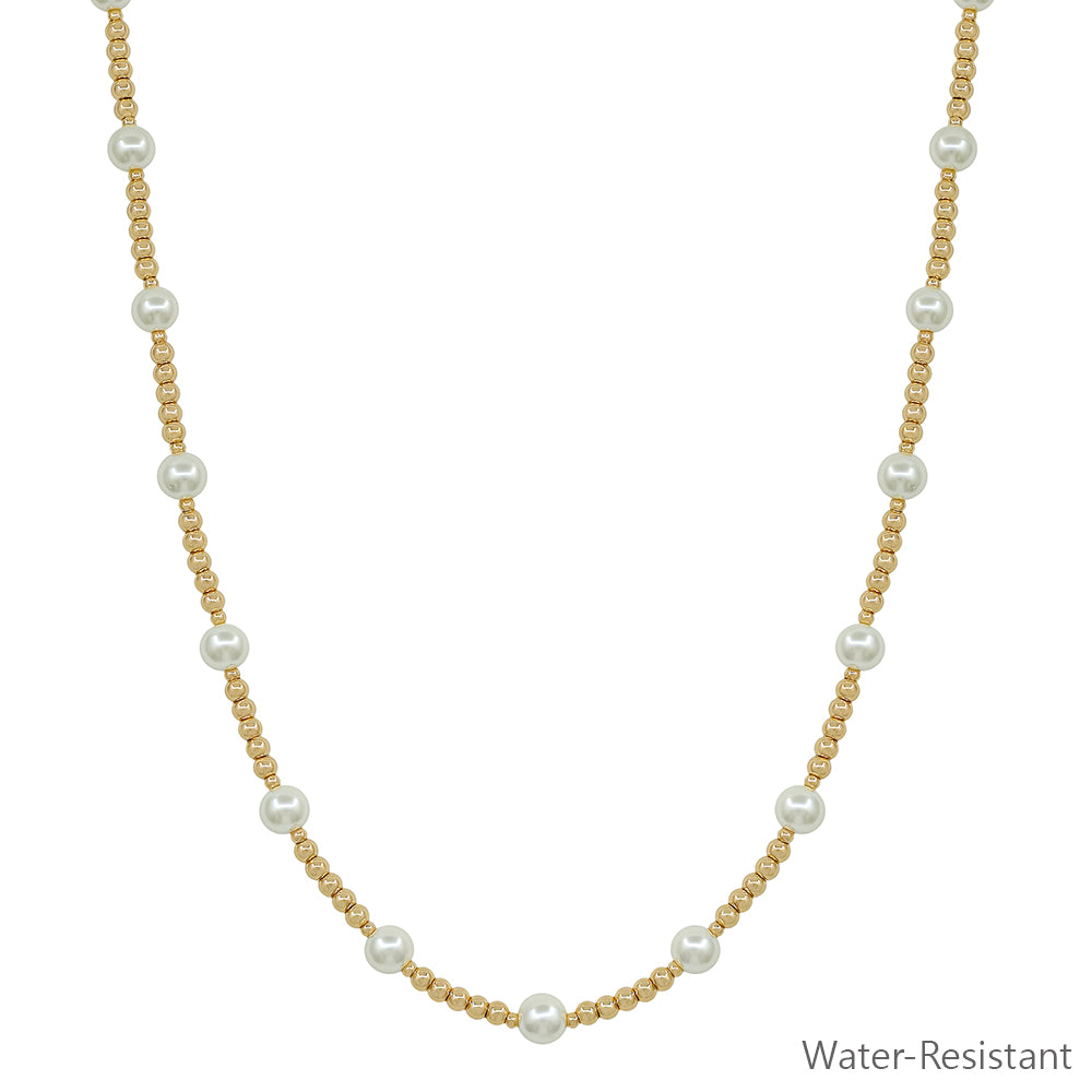 Water Resistant 3MM Gold Bead with 6MM Pearl Beaded 16"-18" Necklace